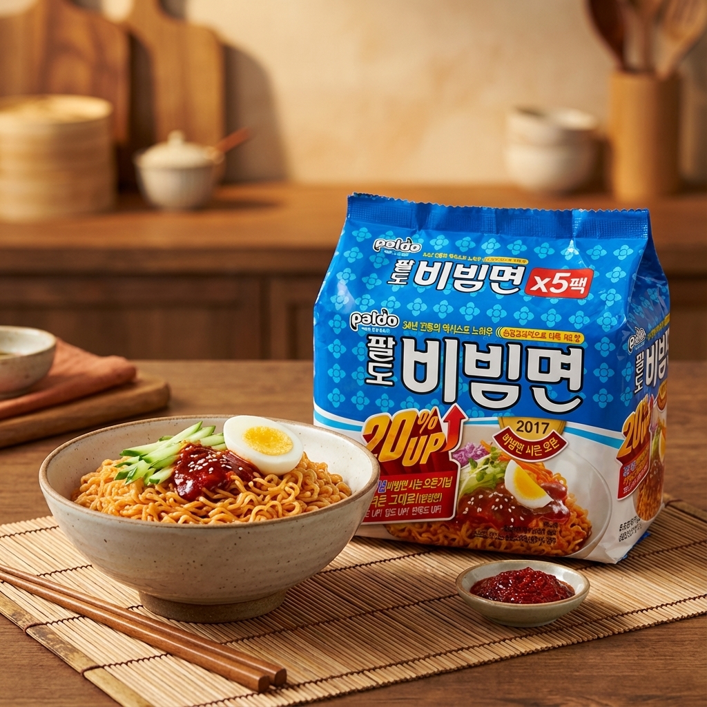 Paldo Bibim Men – der koreanische Klassiker für kalte Nudeln seit 1984! Diese einzigartigen Instant-Nudeln werden kalt serviert und vereinen eine süß-scharfe Würzsauce mit erfrischendem Geschmackserlebnis. Ein echter Sommergenuss!