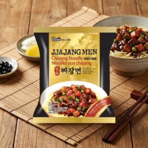 Paldo Jjajangmen Korean Black Bean Noodles 200gPaldo Jjajangmen – koreanisch-chinesisches Fusionsgericht! Dicke Nudeln mit schwarzer Sojabohnensauce, herzhaft ohne Schärfe. 200g.